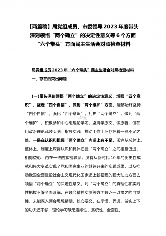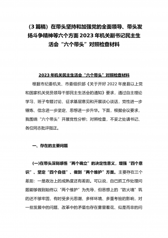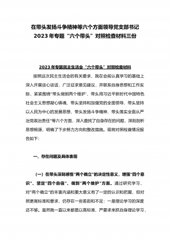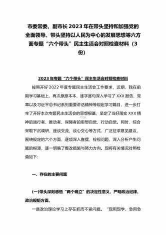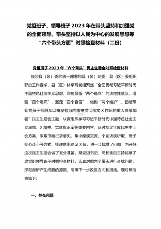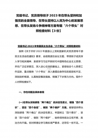 党组书记、党员领导班子2023年在带头坚持和加强党的全面领导、在带头坚持以人民为中心的发展思想、在带头发扬斗争精神等方面专题“六个带头”对照检查材料【3份】