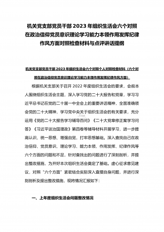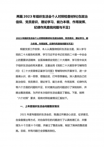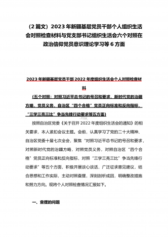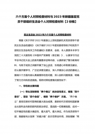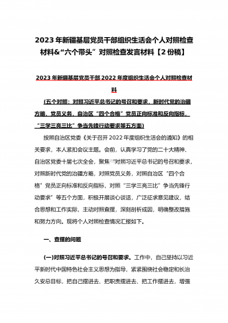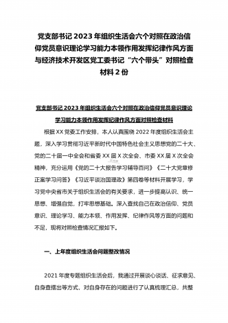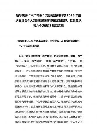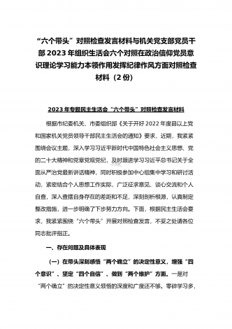 “六个带头”对照检查发言材料与机关党支部党员干部2023年组织生活会六个对照在政治信仰党员意识理论学习能力本领作用发挥纪律作风方面对照检查材料(2份)