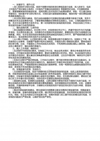 1.“”以四个突出推动党纪学习教育取得扎实成效3 2.“”三举措推动党纪学习教育落地见实5 3.有力有序推进党纪学习教育6 4.“”用好四种方式推动离退休干部党员党纪学习教育见行见效9 5.扎实推动党纪学习教育往深里走往实里走11 6.扎实开展党纪学习教育15 7.推动党纪学习教育走深走实17 8.对标对表推进学习教育18 9.扎实推进党纪学习教育深入开展20 10.推动党纪学习教育走深走实21 11.扎实推进党纪学习教育22 “”以四个突出推动党纪学习教育取得扎实...