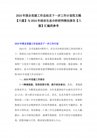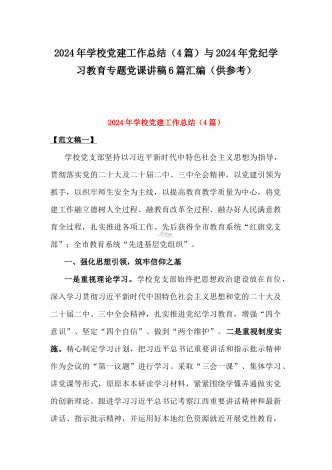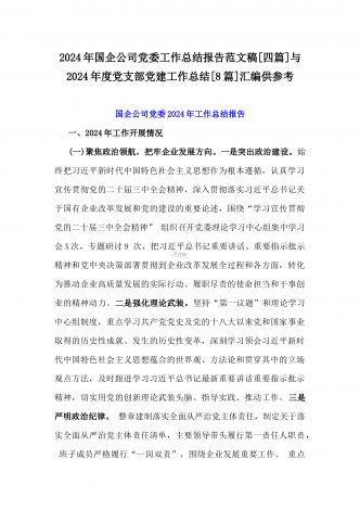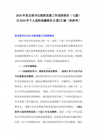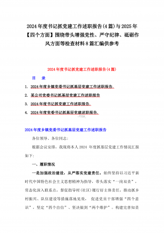 2024年度书记抓党建工作述职报告(4篇)与2025年【四个方面】围绕带头增强党性、严守纪律、砥砺作风方面等检查材料8篇汇编供参考