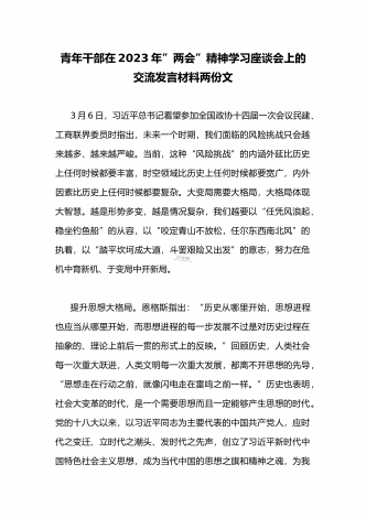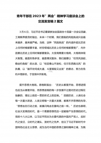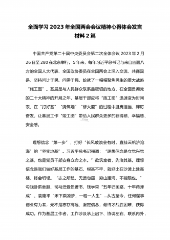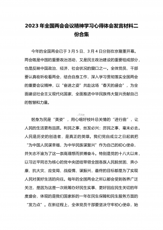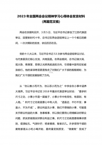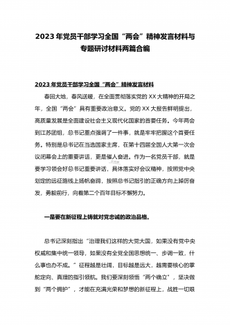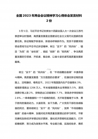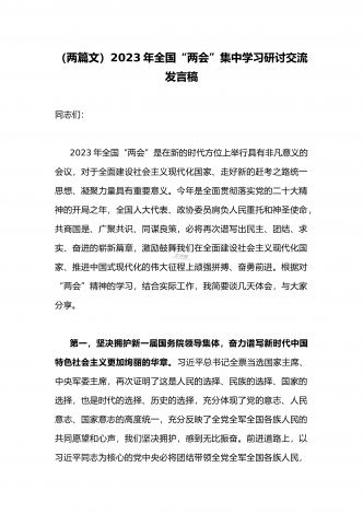 2023年党员干部专题学习贯彻全国“两会”精神交流会上的发言稿(两篇)