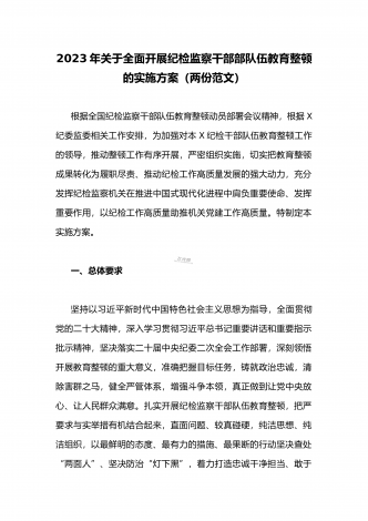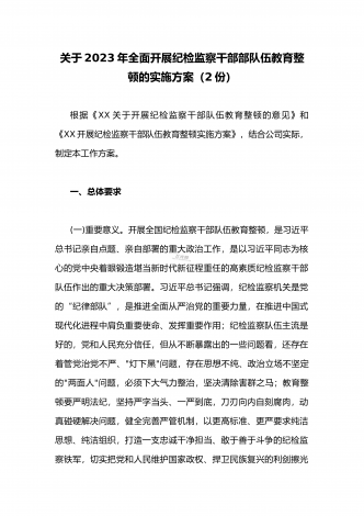 2023年关于全面开展纪检监察干部部队伍教育整顿的实施方案(两份范文)