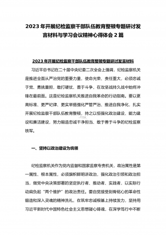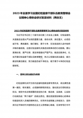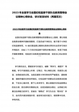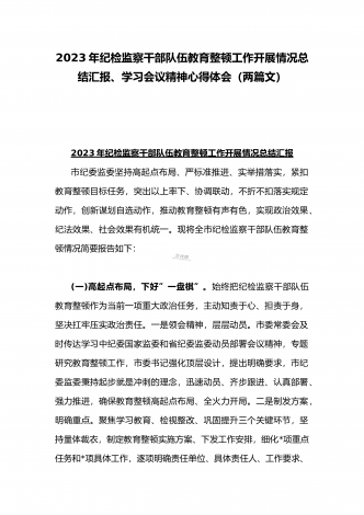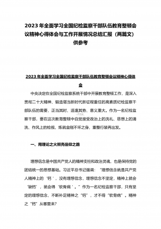 2023年全面学习全国纪检监察干部队伍教育整顿会议精神心得体会与工作开展情况总结汇报(两篇文)供参考