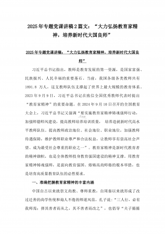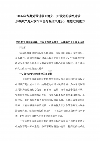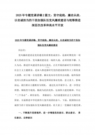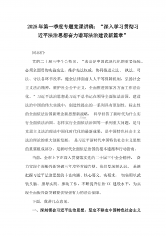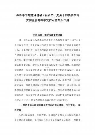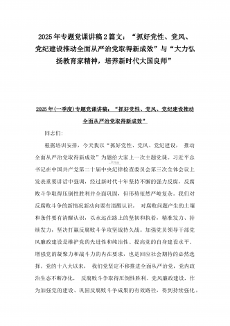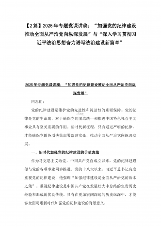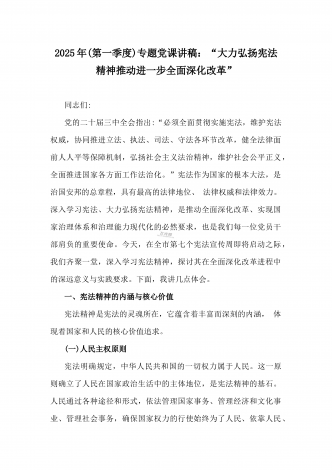 2025年(第一季度)专题党课讲稿2篇:“大力弘扬宪法精神推动进一步全面深化改革”与“抓好党性、党风、党纪建设推动全面从严治党取得新成效”