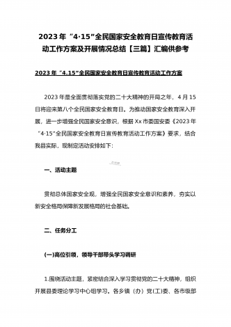 2023年“4·15”全民国家安全教育日宣传教育活动工作方案及开展情况总结【三篇】汇编供参考
