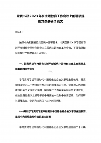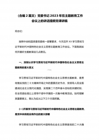 2023年党课讲稿(两篇文):大力发扬斗争精神勇于开创事业发展新天地与永葆共产党员清正廉洁的政治本色2023年党课讲稿5930字文:大力发扬斗争精神勇于开创事业发展新天地同志们:敢于斗争、善于斗争是我们党战胜一切艰难险阻的强大精神力量,深刻烙印于党和国家发展的伟大进程。习近平总书记在党的二十大报告中22次讲到“斗争”,并明确地把“敢于斗争、善于斗争”作为“三个务必”的重要内容,把“坚持发扬斗争精神”作为前进道路上必须牢牢把握的重大原则之一,强调要“依靠顽强斗争打开事业发展新天地”。新时代新征程上...