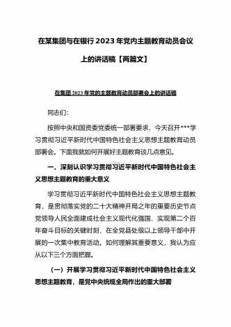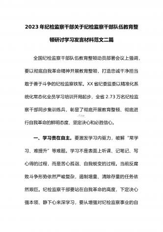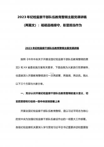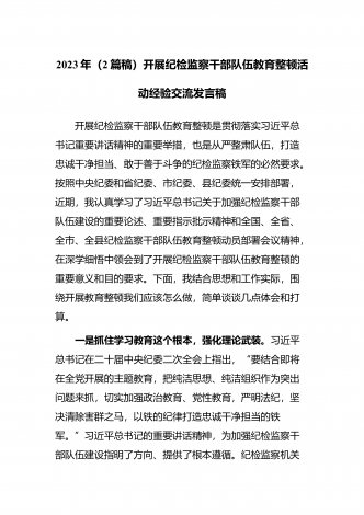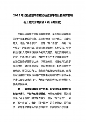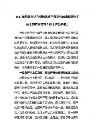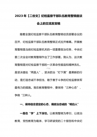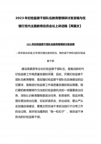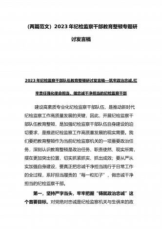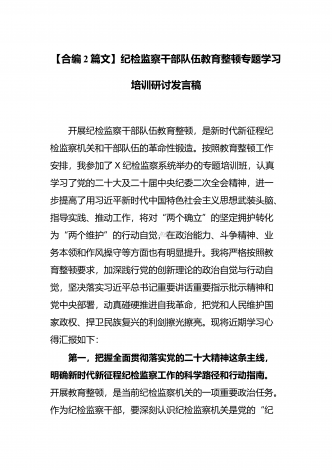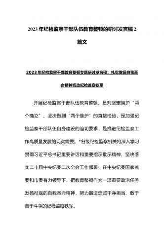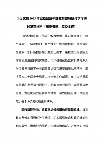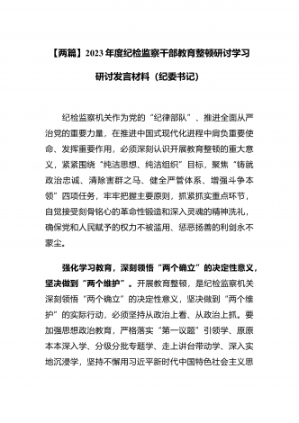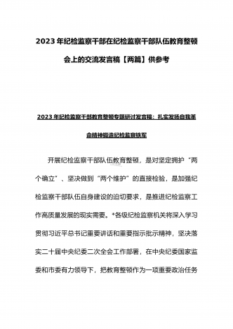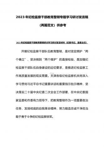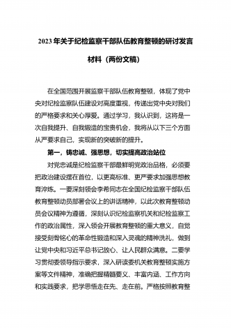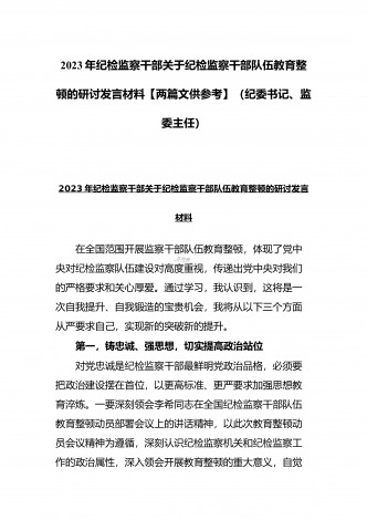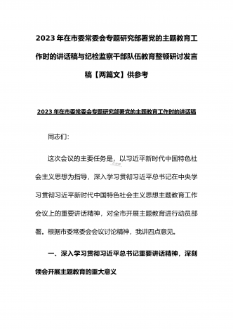 2023年在市委常委会专题研究部署党的主题教育工作时的讲话稿与纪检监察干部队伍教育整顿研讨发言稿【两篇文】供参考