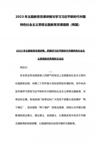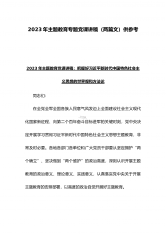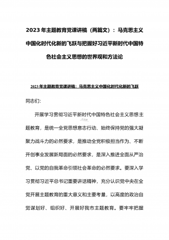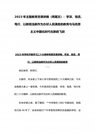 2023年学校开展学习二十大精神专题党课讲稿(两篇):学深、悟透、笃行,以新担当新作为办好人民满意的教育与把握好习近平新时代中国特色社会主义思想的世界观和方法论