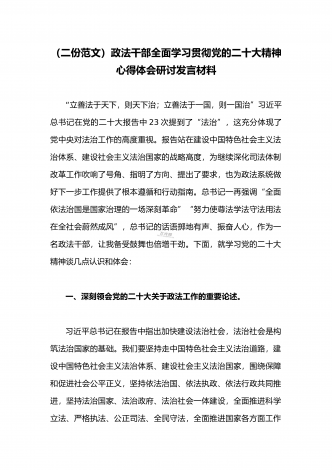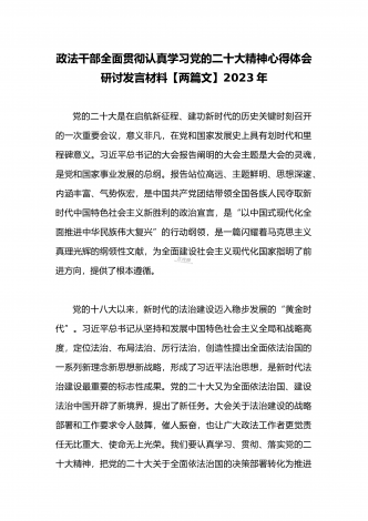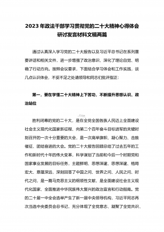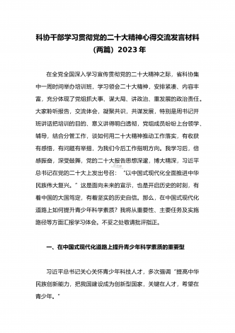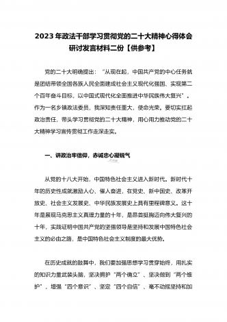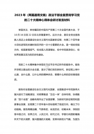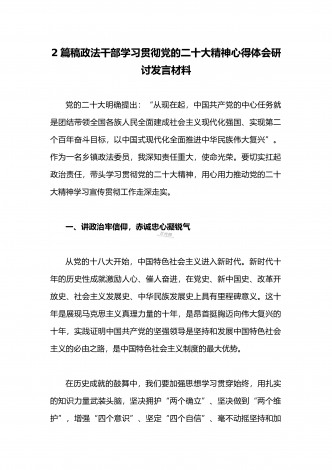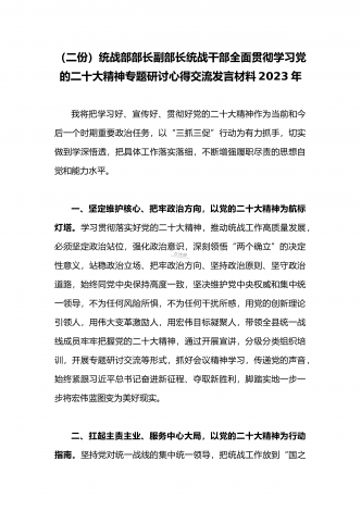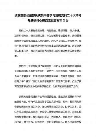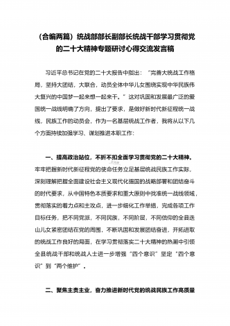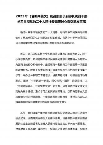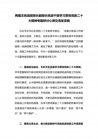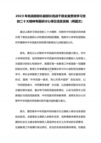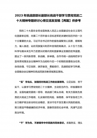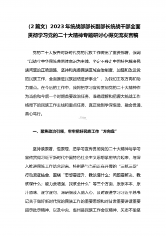 2023年(二份供参考范文)统战部部长副部长统战干部全面贯彻学习党的二十大精神专题研讨心得交流发言材料
