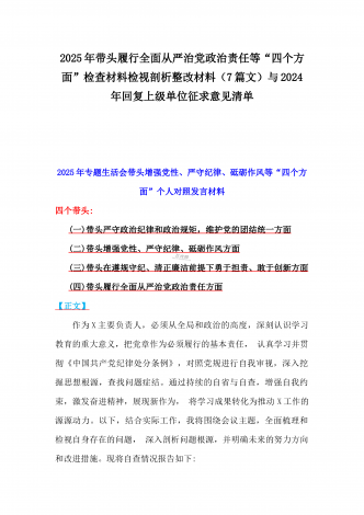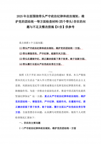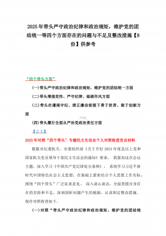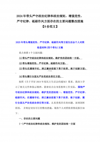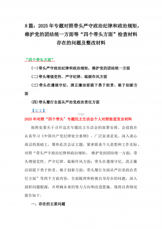 2025年围绕带头增强党性、严守纪律、砥砺作风、在遵规守纪、清正廉洁前提下勇于担责、敢于创新方面等“四个带头”检查材料剖析存在的问题、努力改进措施材料【8份】2025年带头在遵规守纪、清正廉洁前提下勇于担责、敢于创新等“四个方面”发言材料四个带头:(一)带头严守政治纪律和政治规矩,维护党的团结统一方面(二)带头增强党性、严守纪律、砥砺作风方面(三)带头在遵规守纪、清正廉洁前提下勇于担责、敢于创新方面(四)带头履行全面从严治党政治责任方面【正文】作为X主要负责人,必须从全局和政治的高度,深刻认识学...