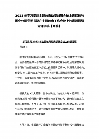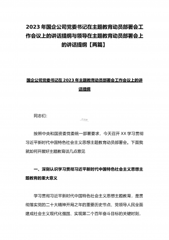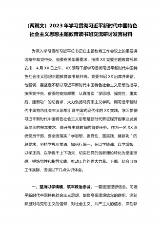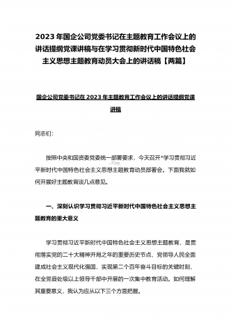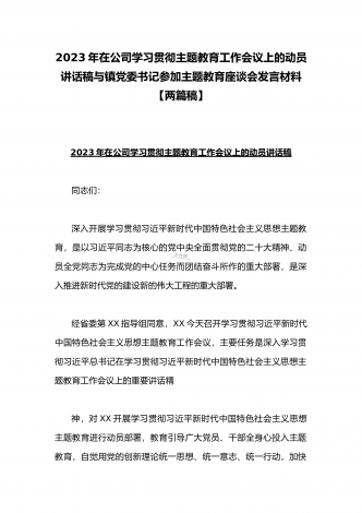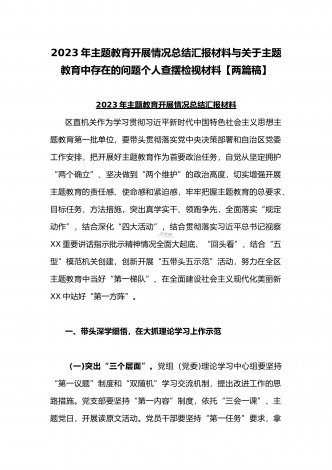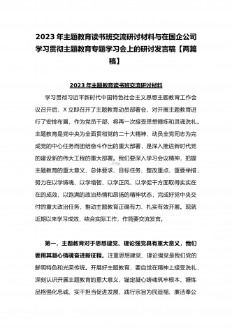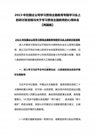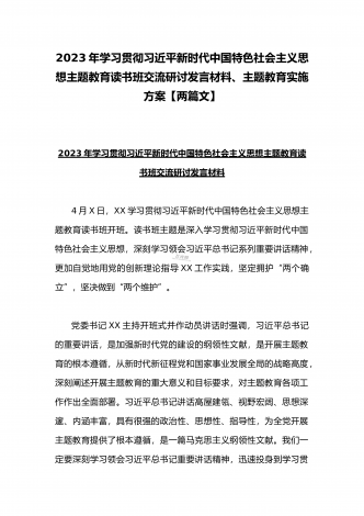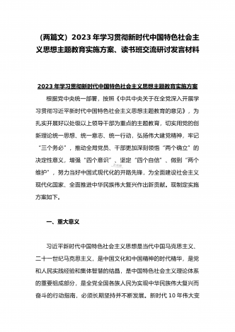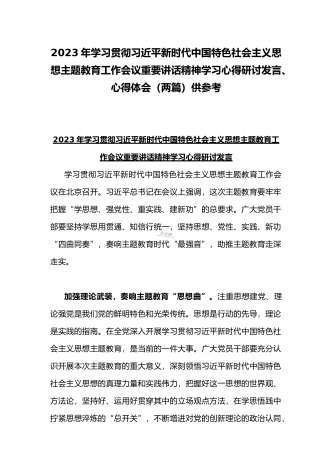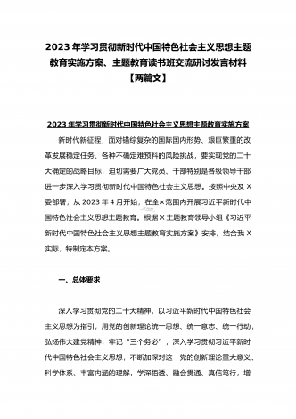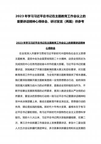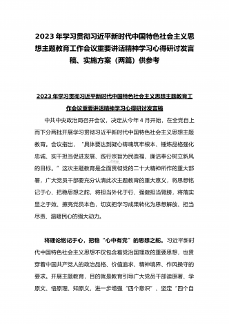 2023年深入开展学习贯彻习近平新时代中国特色社会主义思想主题教育实施方案与学习习近平总书记在主题教育工作会议上的重要讲话精神心得体会(两篇)供参考