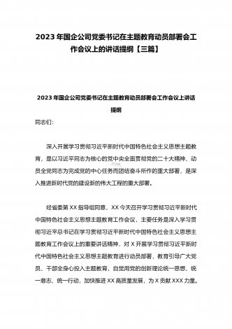 2023年深入开展学习贯彻习近平新时代中国特色社会主义思想主题教育实施方案与学习习近平总书记在主题教育工作会议上的重要讲话精神心得体会(两篇)供参考2023年深入开展学习贯彻习近平新时代中国特色社会主义思想主题教育实施方案根据《中共中央关于在全党开展开展学习贯彻习近平新时代中国特色社会主义思想主题教育的意见》精神,结合XX工作实际,就开展开展学习贯彻习近平新时代中国特色社会主义思想主题教育,作出如下安排。一、把握总体要求主题教育要牢牢把握“学思想、强党性、重实践、建新功”的总要求。要全面学习领会...