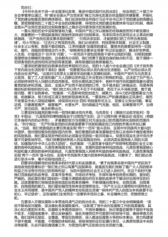 同志们: 《中共中央关于进一步全面深化改革、推进中国式现代化的决定》,经由党的二十届三中“”全会审慎审议通过,将健全全面从严治党体系确立为深化改革总体蓝图的关键要素,并细化了党的建设制度改革的具体路径。我们应深刻领会并践行习近平总书记关于党的建设的高瞻远瞩,紧密跟随党的二十届三中全会的战略部署,持续优化党的建设制度体系与运行机制,确保全面从严治党在坚实的法规制度基石上稳步迈向更深层次的发展阶段。 一要从党的历史中汲取智慧和力量。中国共产党之所以能够历经艰难困苦而不断发展壮大,很重要的一个...