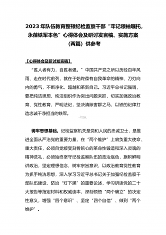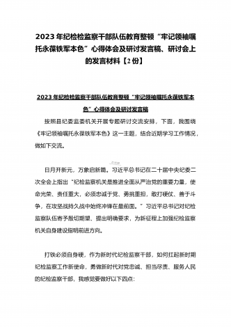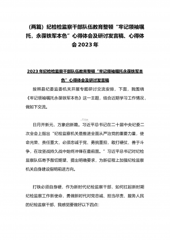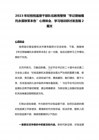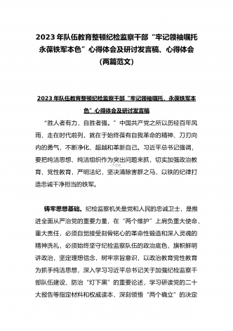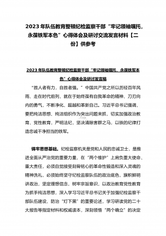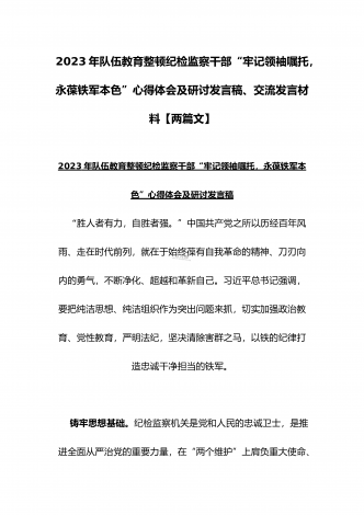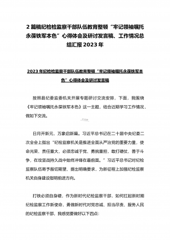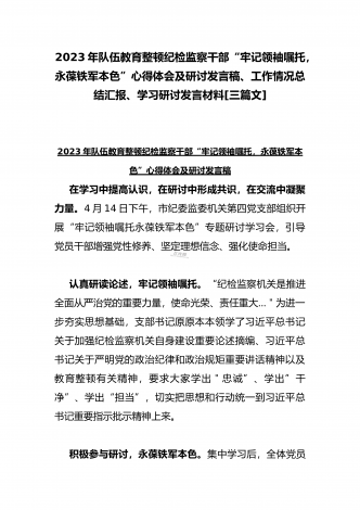 2023年队伍教育整顿纪检监察干部“牢记领袖嘱托,永葆铁军本色”心得体会及研讨发言稿、工作情况总结汇报、学习研讨发言材料[三篇文]