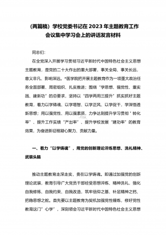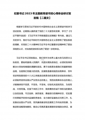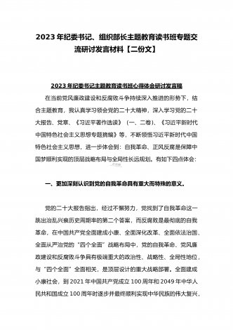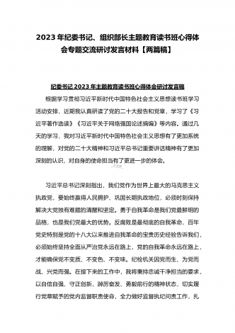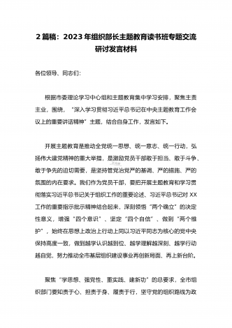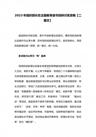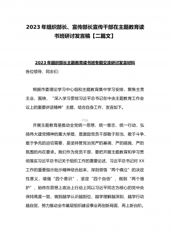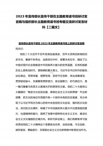 2023年组织部长主题教育读书班专题交流研讨发言材料与宣传部长宣传干部在主题教育读书班上研讨发言稿【二篇文】