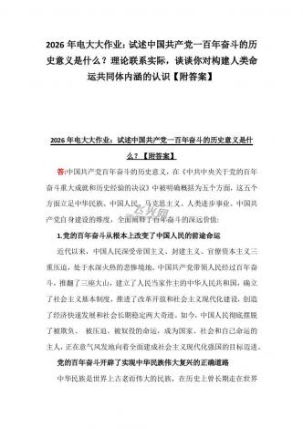 2026年电大大作业:试述中国共产党一百年奋斗的历史意义是什么?理论联系实际,谈谈你对构建人类命运共同体内涵的认识【附答案】
