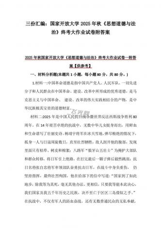 三份汇编:国家开放大学2025年秋《思想道德与法治》终考大作业试卷附答案