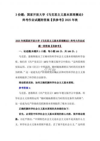 3份题:国家开放大学《马克思主义基本原理概论》终考作业试题附答案【供参考】2025年秋