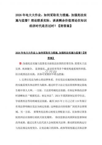 2026年电大大作业:如何采取有力措施,加强宪法实施与监督?理论联系实际,谈谈剩余价值理论在知识经济时代是否过时?【附答案】