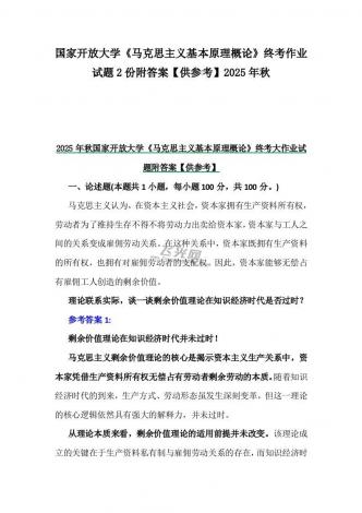 国家开放大学《马克思主义基本原理概论》终考作业试题2份附答案【供参考】2025年秋