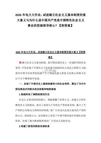 2026年电大大作业:试述确立社会主义基本制度的重大意义与为什么说中国共产党是中国特色社会主义事业的坚强领导核心?【附答案】