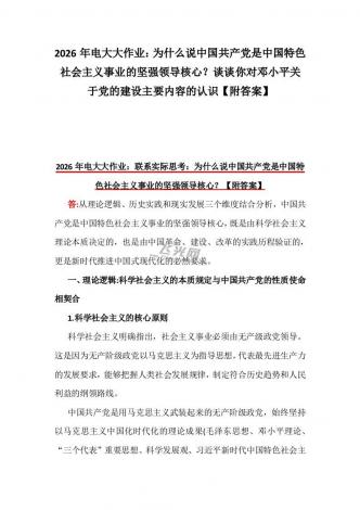 2026年电大大作业:为什么说中国共产党是中国特色社会主义事业的坚强领导核心?谈谈你对邓小平关于党的建设主要内容的认识【附答案】